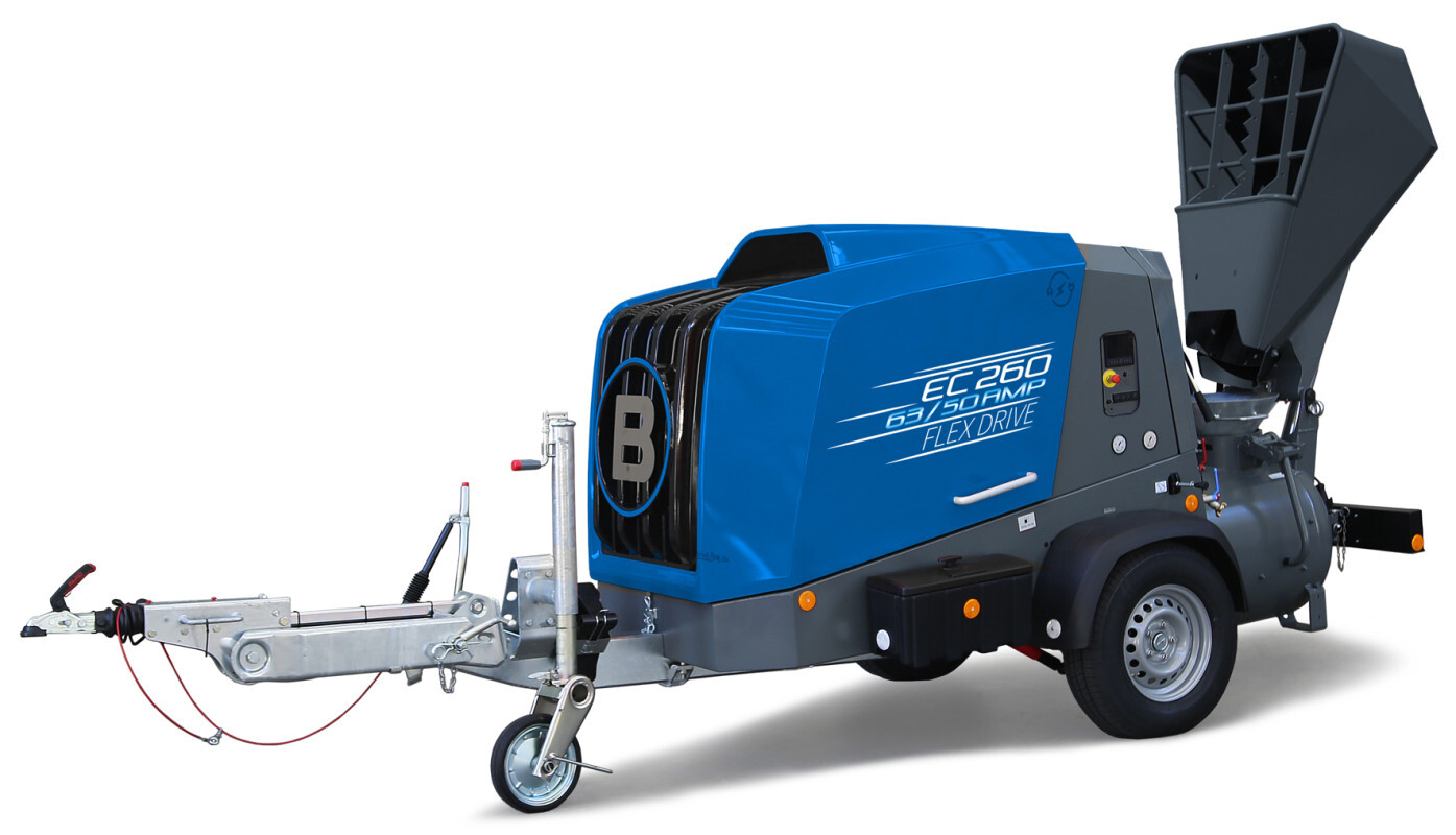 wie seine kraftstoffbetriebene Ausführung. Der EC 260/45 ist eine zuverlässige, robuste und effiziente Estrichpumpe mit hoher