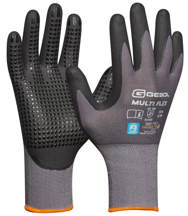 Beschichtung: Nitril-Mikroschaum mit Nitril-Noppen. Anwendungsbereiche: Reparaturarbeiten, Montagearbeiten, Präzisionsarbeiten,