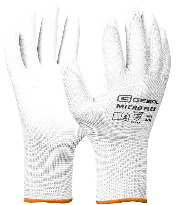 Fingerfertigkeit, ein sicherer Griff auch bei glatten Gegenständen. Handrücken: 100 % Polyester. Handinnenfläche: Polyurethan.
