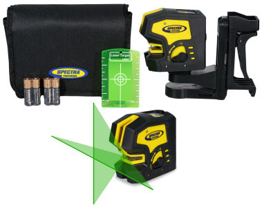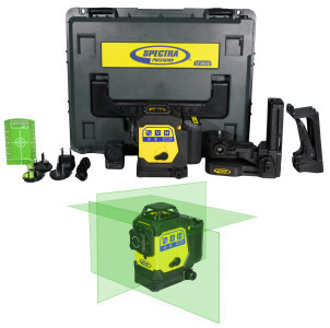 Robuster Linienlaser für den Innenausbau mit hellen Laserlinien. Zum Ausrichten von Küchenmöbeln oder Einrichten von Türen und Fenstern, zum Verlegen von Fliesen und im Trockenbau einsetzbar. Grüne, vertikale Laserlinie wird über das...
